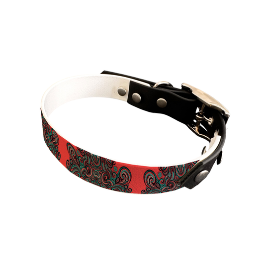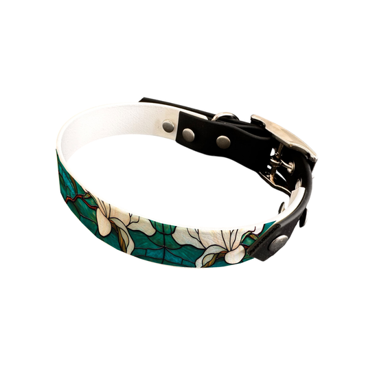 Collier bicolore large pour chien en BioThane® imprimé – Collection plantes et fleurs – 38/25 mm