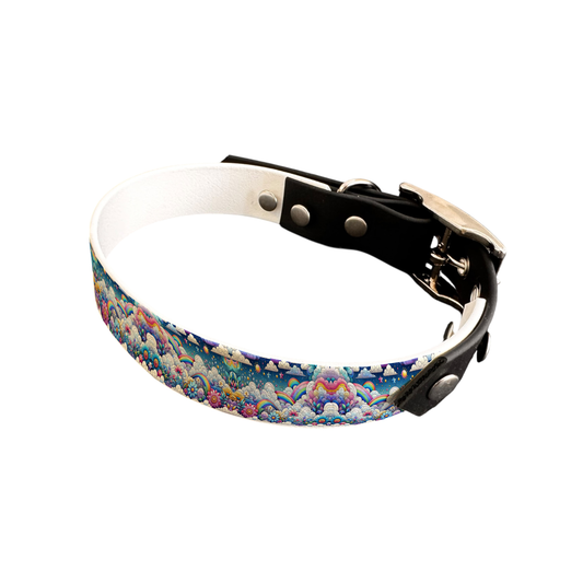 Collier bicolore large pour chien en BioThane® imprimé – Collection nuages– 25 mm