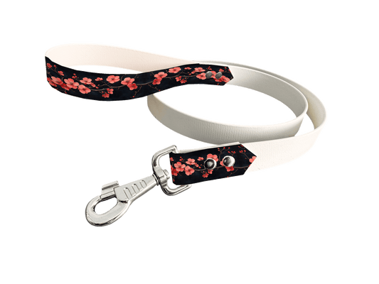 BioThane® imprimé – Fleurs de cerisier sur fond vert d'eau