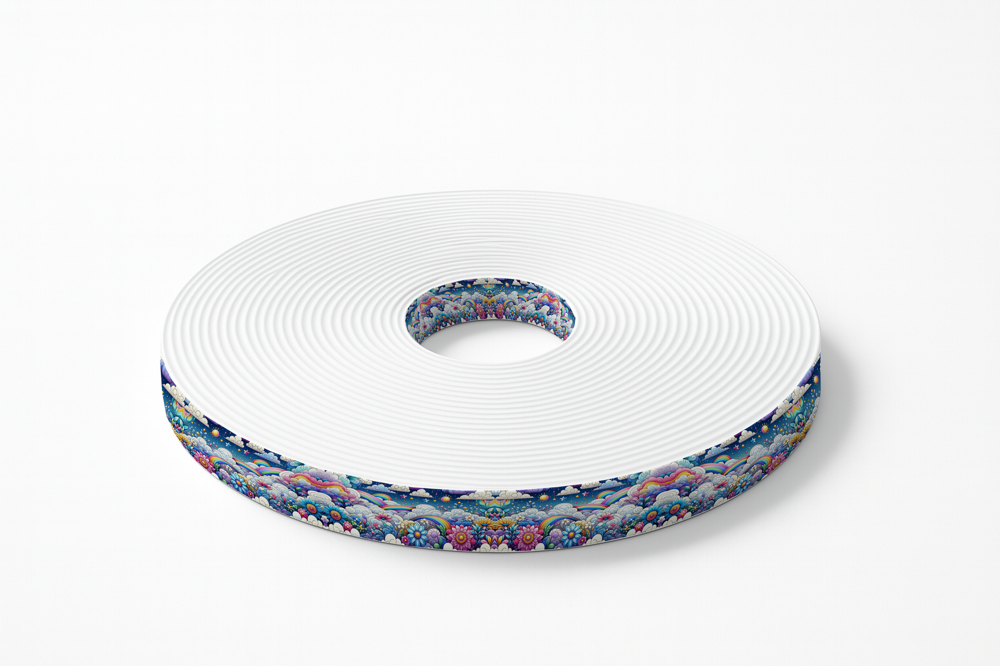 Apportez une touche de magie et de poésie à vos créations grâce à ce motif féérique d’arcs-en-ciel pastel dans un ciel rempli de nuages, de fleurs et d’étoiles. Ce design doux et coloré évoque un univers rêveur, parfait pour des colliers ou laisses originaux, enfantins ou simplement joyeux.