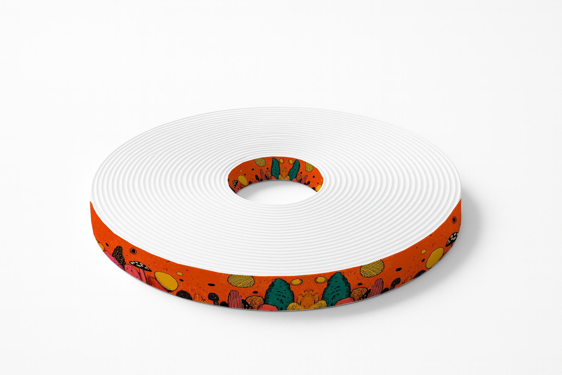 Ajoutez une touche pop et psychédélique à vos créations avec notre BioThane® imprimé "Champignons Pop sur orange" ! Ce motif original représente une joyeuse farandole de champignons graphiques et colorés (jaune, rose, noir, vert, turquoise...) sur un fond orange intense et texturé, pour un rendu éclatant et décalé.