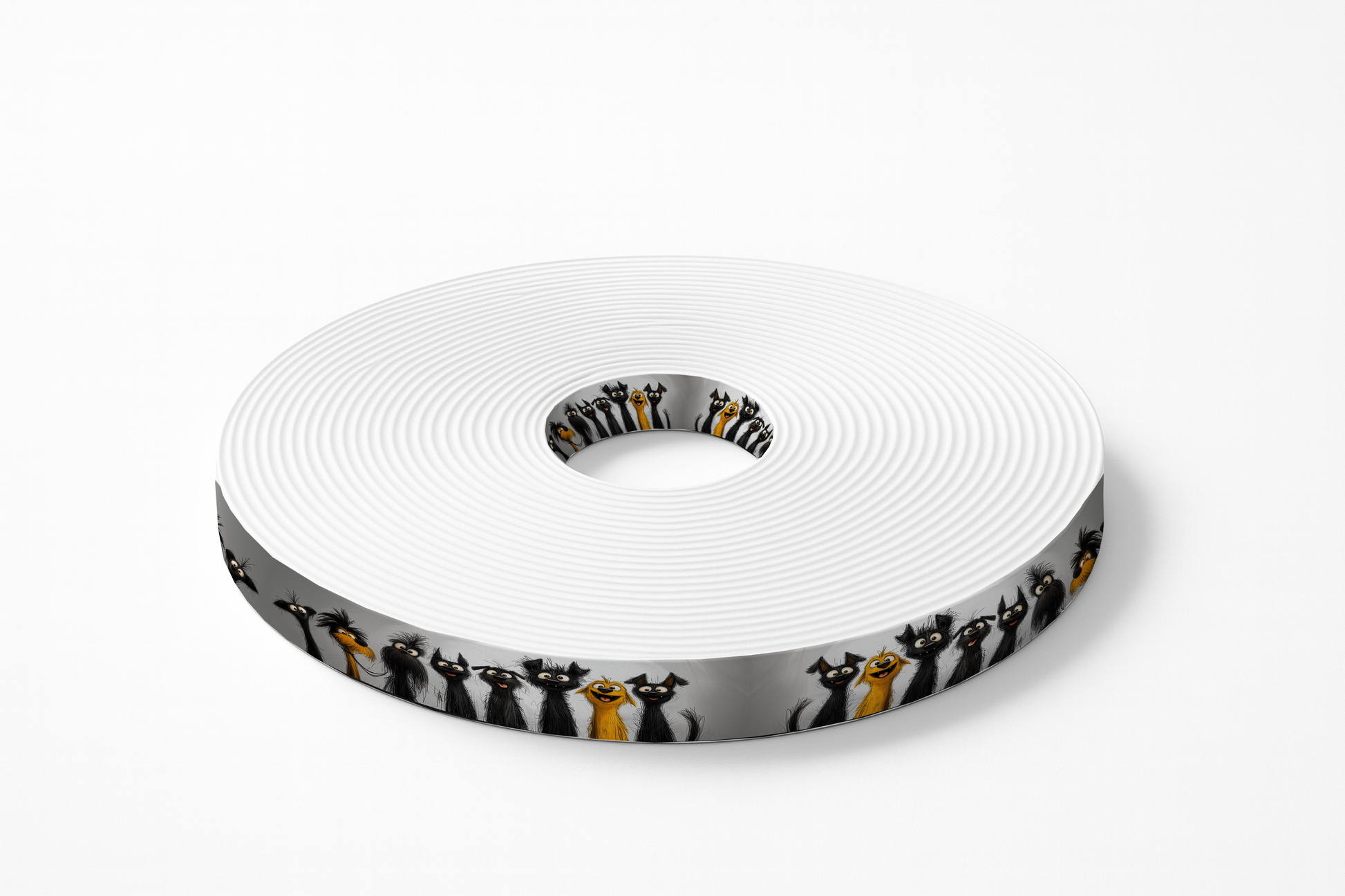 Ce motif en BioThane® imprimé met en scène une joyeuse bande de chiens cartoon déjantés, tous plus loufoques les uns que les autres, sur un fond gris texturé élégant. Chaque chien arbore une expression farfelue, apportant une dose de bonne humeur instantanée à vos accessoires !