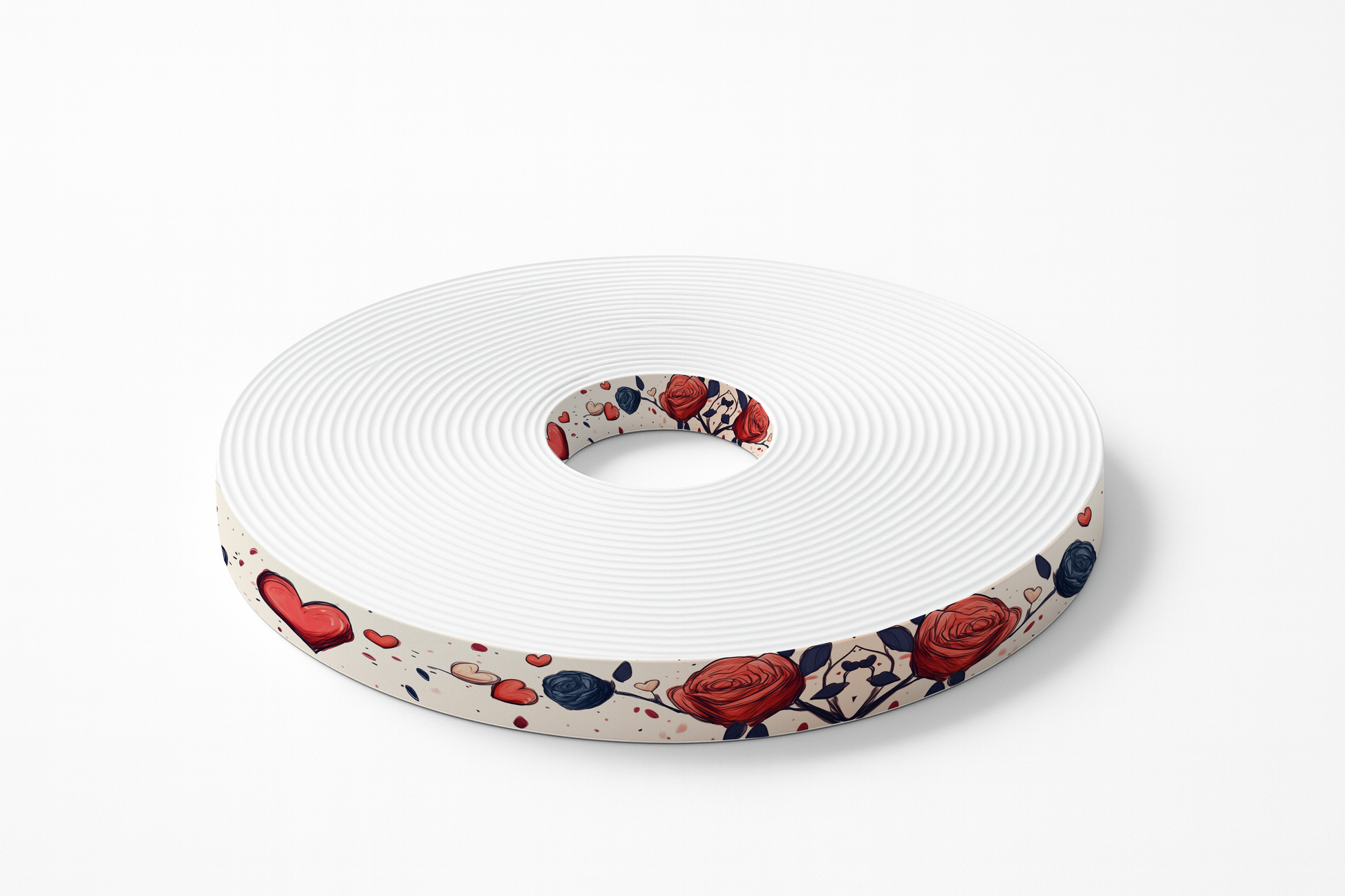 Apportez une touche d'amour et d'élégance à vos créations avec ce motif de BioThane imprimé représentant des cœurs rouges, beige et bleu marine accompagnés de roses stylisées dans les mêmes tons. Sur un fond clair délicatement moucheté, ce design romantique et moderne est parfait pour des accessoires pleins de tendresse.