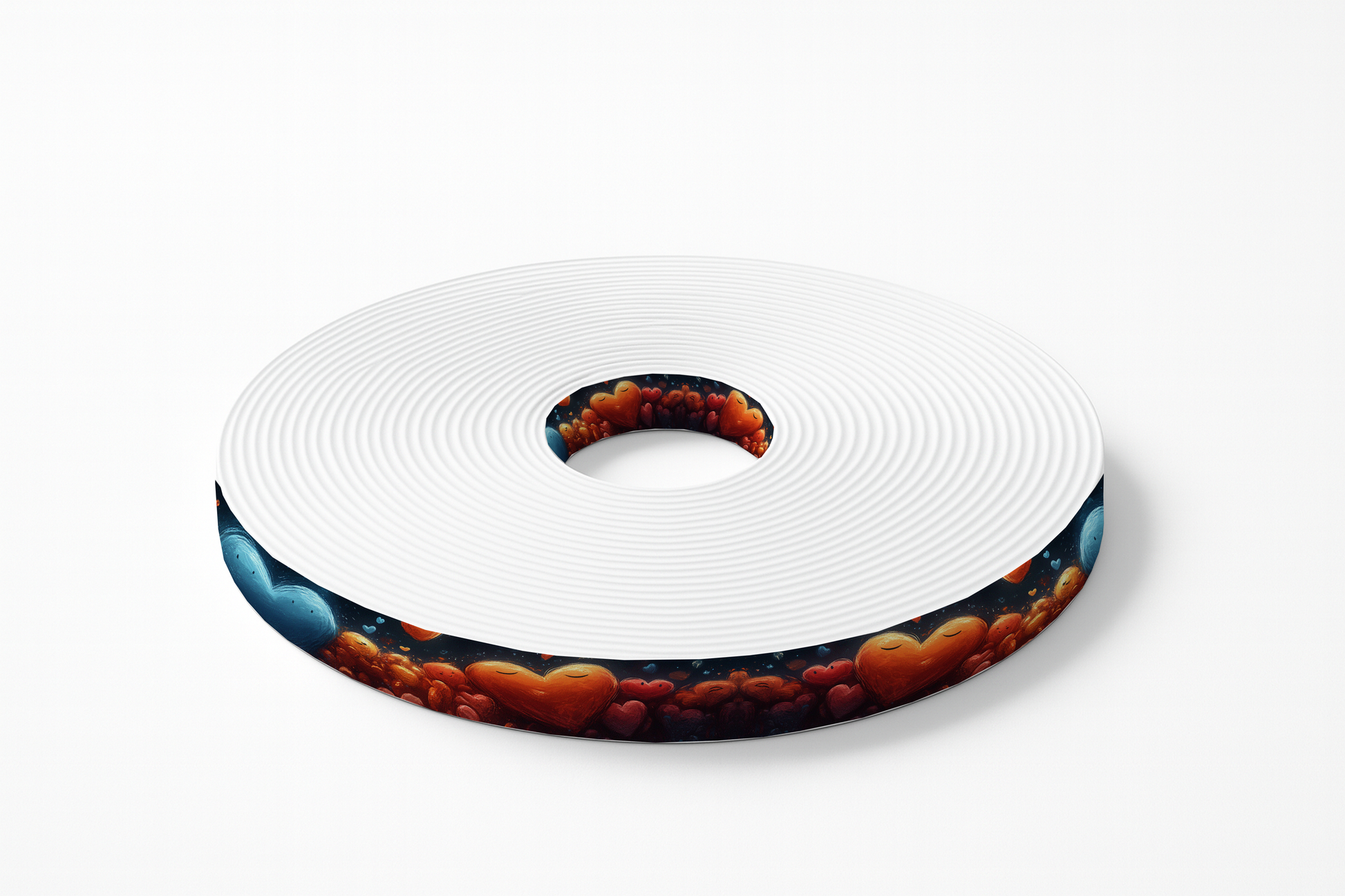 Ajoutez une touche ludique et féérique à vos créations avec ce motif de BioThane imprimé représentant des cœurs expressifs aux couleurs vives (bleu, orange, jaune, rouge) flottant dans un univers galactique doux et texturé. Chaque cœur semble avoir une âme, avec des petites expressions adorables qui insufflent de la vie à vos accessoires !