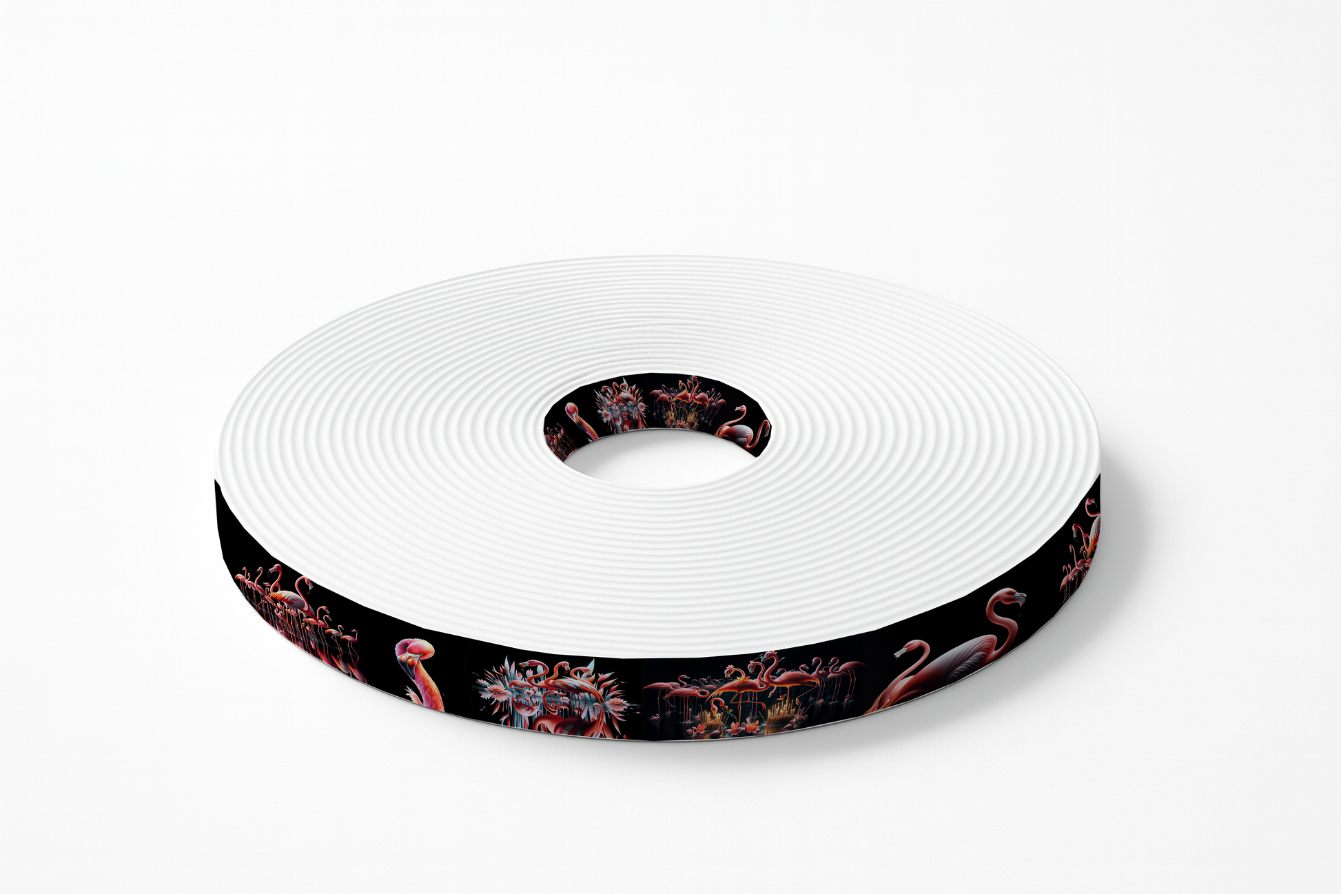 Ce motif flamboyant de flamants roses sur fond noir profond est idéal pour créer des colliers, laisses ou harnais originaux et élégants. Avec ses teintes roses lumineuses et ses détails stylisés, il se démarque par son caractère à la fois tropical et raffiné.