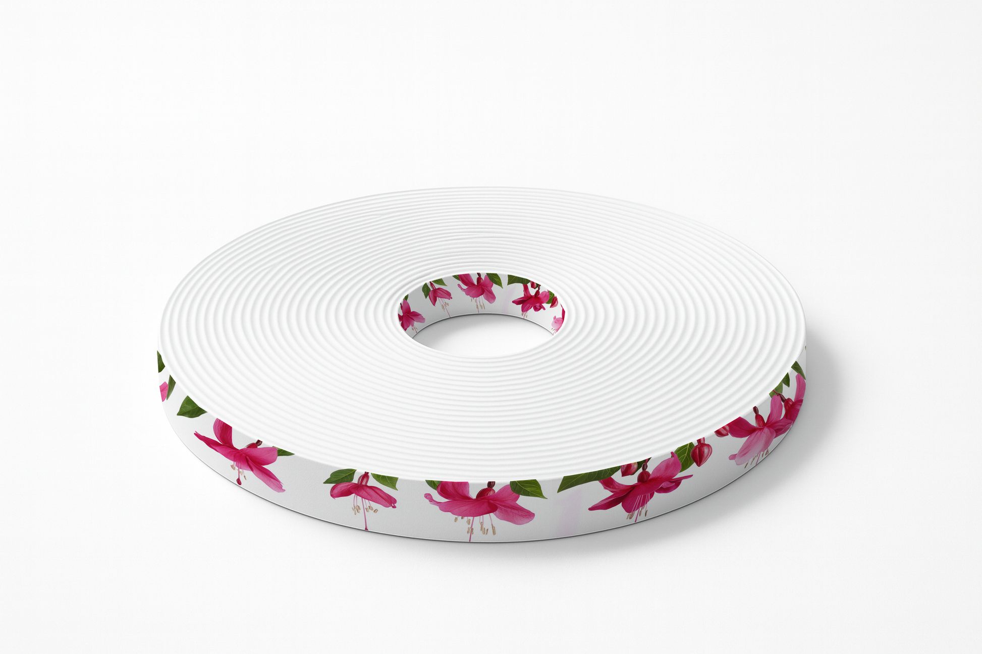 BioThane imprimé – Fleurs de fuchsia rose sur fond blanc