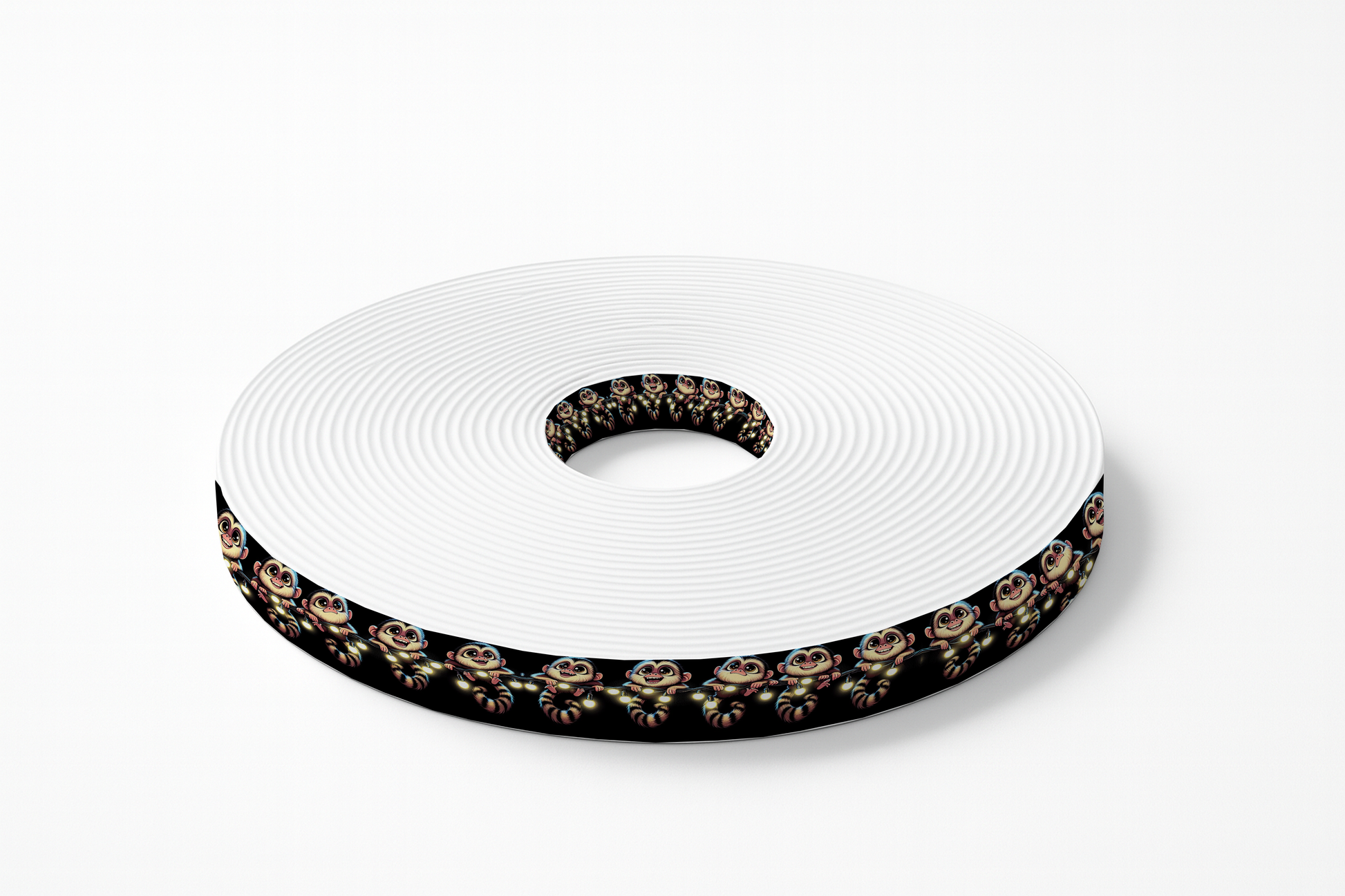 Faites briller vos créations avec ce motif amusant représentant des petits singes cartoon suspendus à une guirlande lumineuse, sur fond noir profond. Un design à la fois espiègle, mignon et parfaitement adapté à des accessoires originaux pour chiens ou animaux !