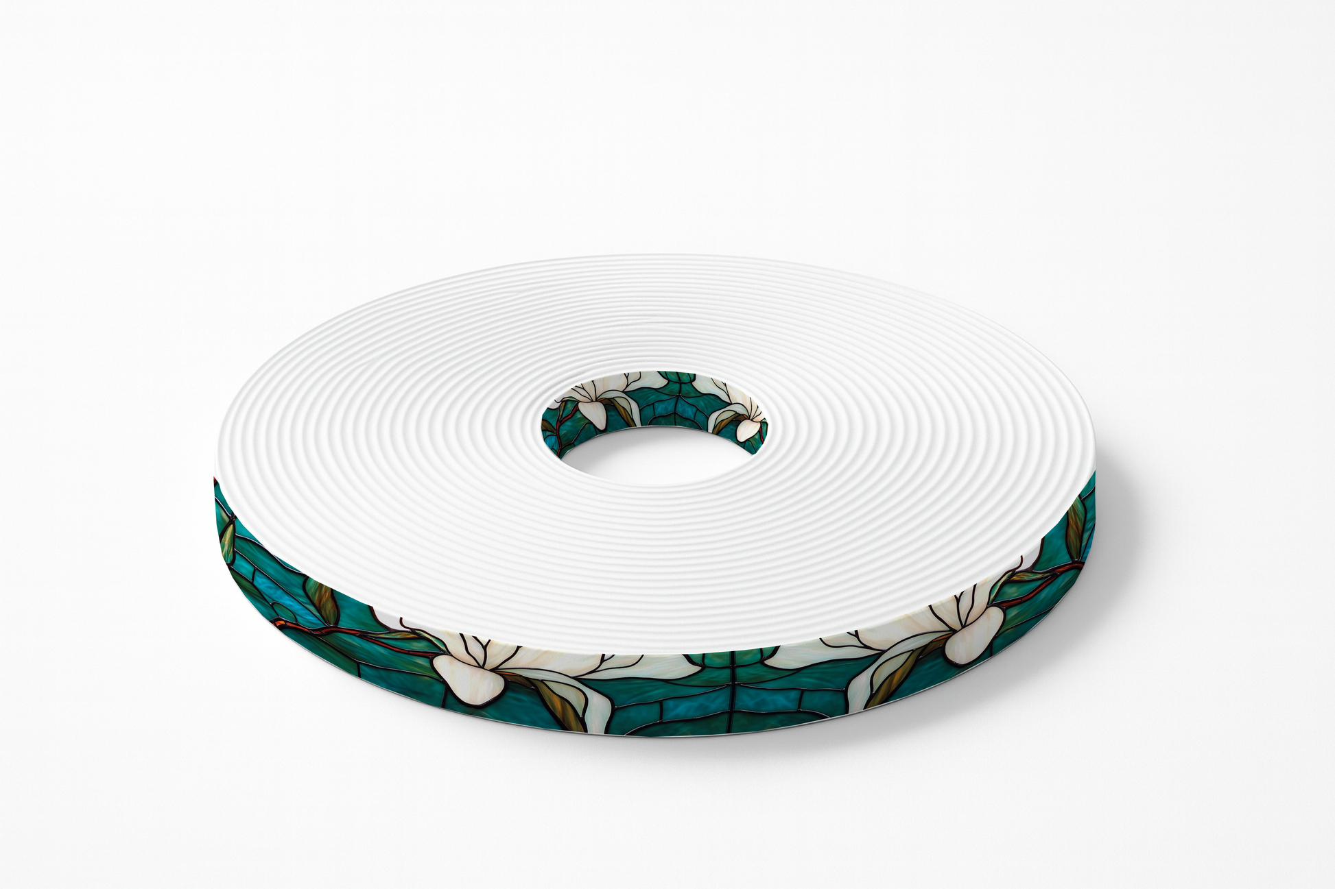 Un motif saisissant représentant des fleurs de magnolia en style vitrail. Une composition artistique aux reflets de verre coloré pour un rendu élégant et unique.