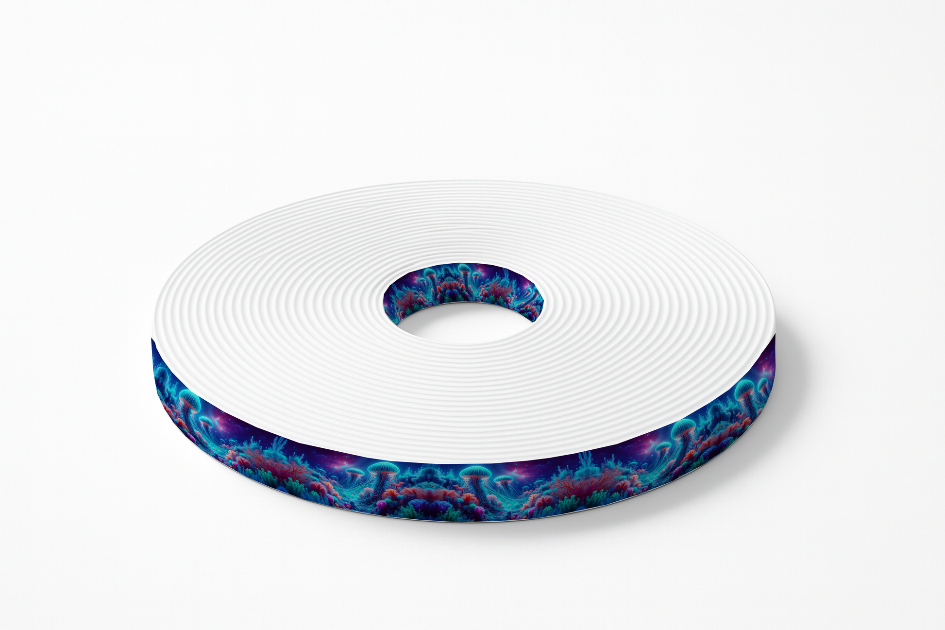 Plongez dans un monde onirique avec notre BioThane imprimé "Méduses Galactiques" – un motif captivant mêlant les profondeurs marines à un univers étoilé et fantastique. Des méduses lumineuses aux teintes bleutées flottent au milieu d’un corail éclatant, dans un décor cosmique digne des plus beaux rêves aquatiques.