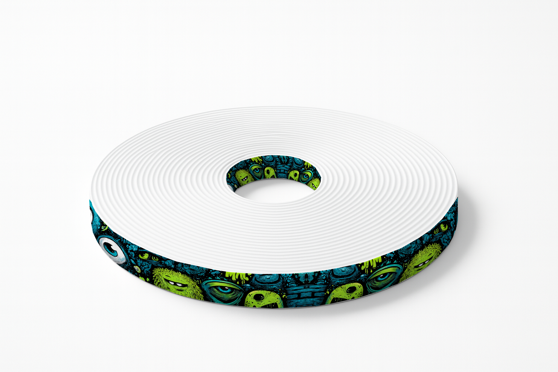 Un motif qui a du mordant ! Ce BioThane imprimé présente une joyeuse bande de petits monstres colorés, dans des tons bleus, verts et noirs vibrants. Les personnages aux grands yeux expressifs et aux formes déjantées apportent une touche délirante et fun à tous vos accessoires canins.