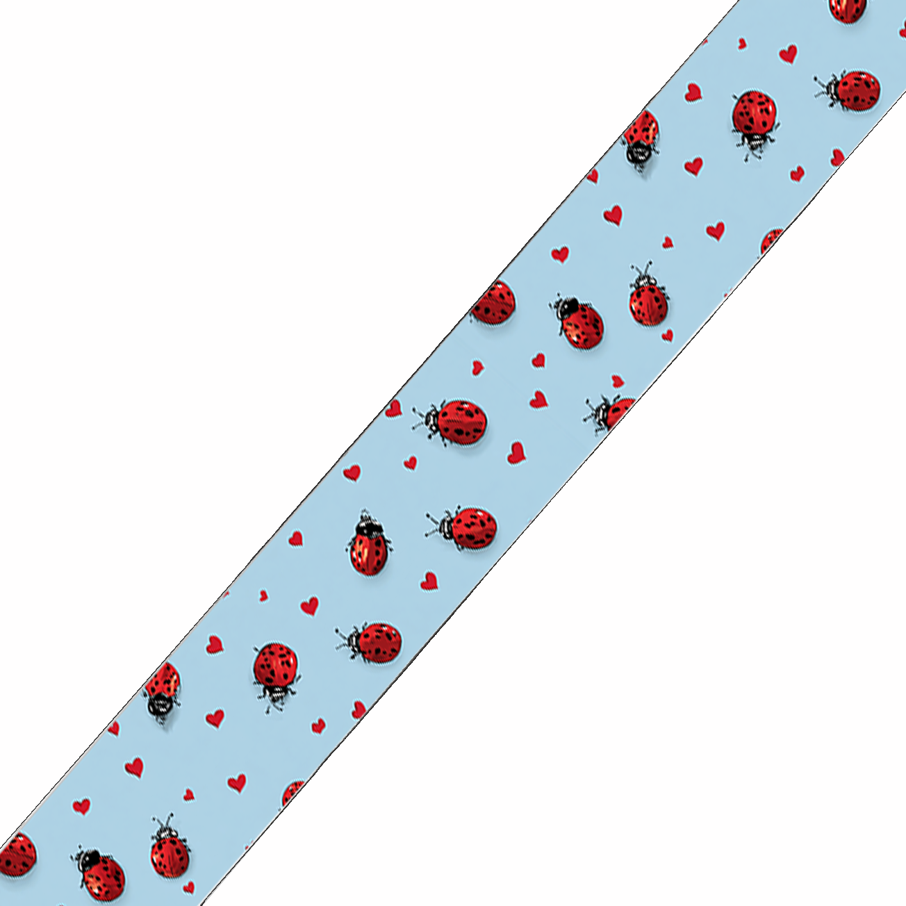 BioThane imprimé – Motif Coccinelles & Cœurs fond bleu ciel