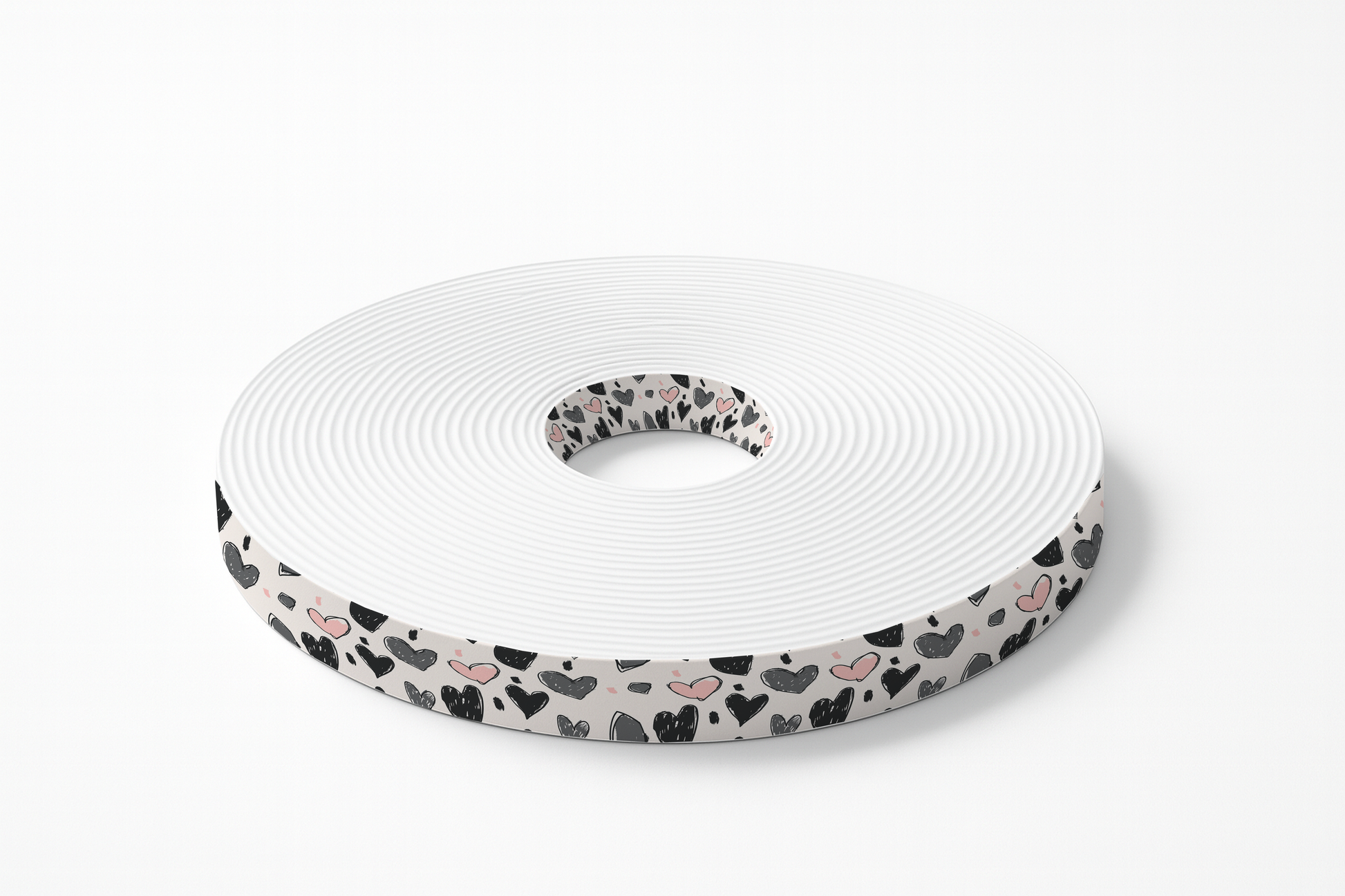 Ce BioThane imprimé séduit par son motif de cœurs dessinés à la main, mêlant noir profond, gris doux et rose poudré sur un fond clair. Un design à la fois moderne, tendre et intemporel, parfait pour des créations élégantes et pleines de douceur.