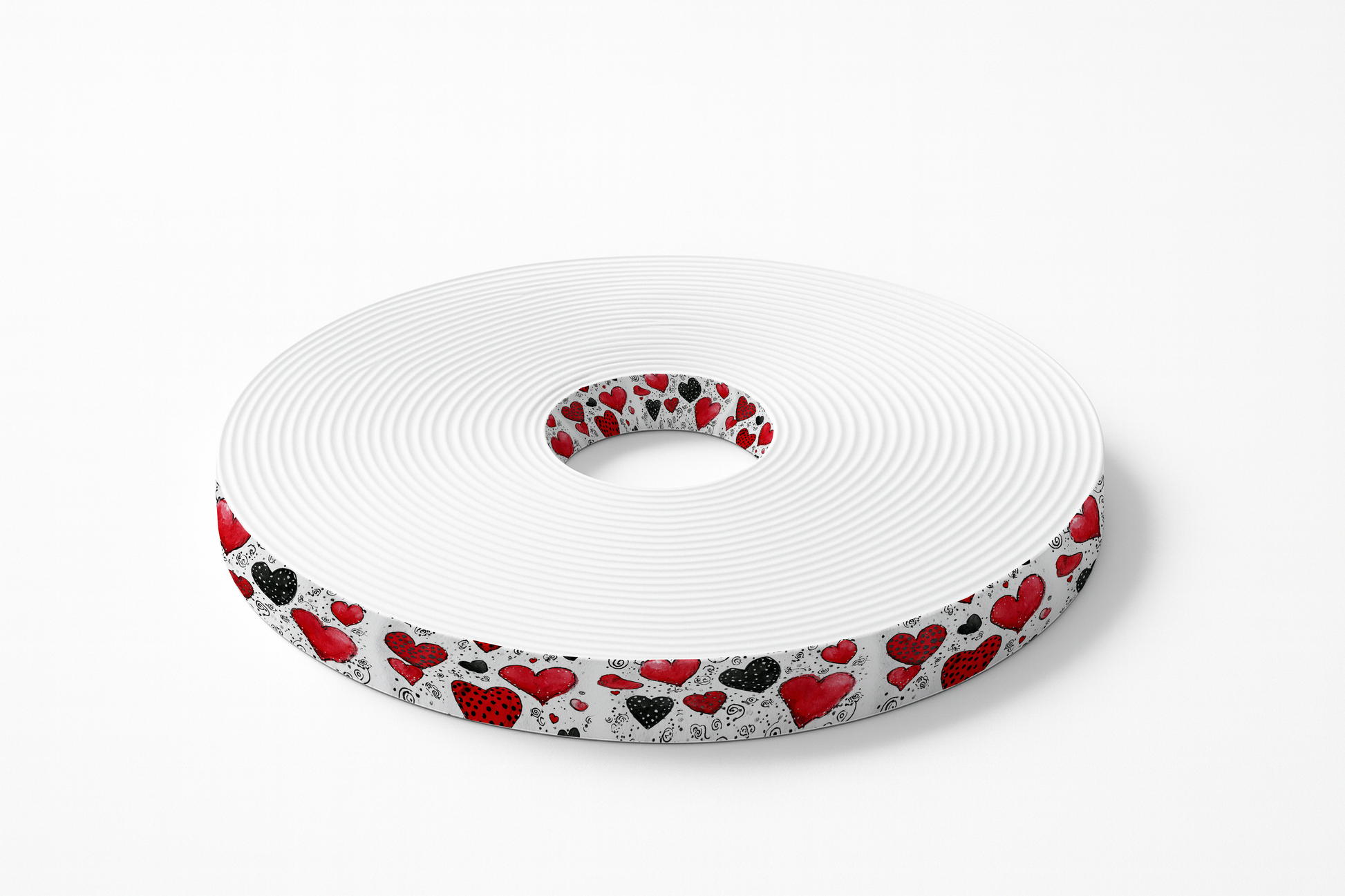 BioThane imprimé – Motif Cœurs rouges & noirs (fond clair)