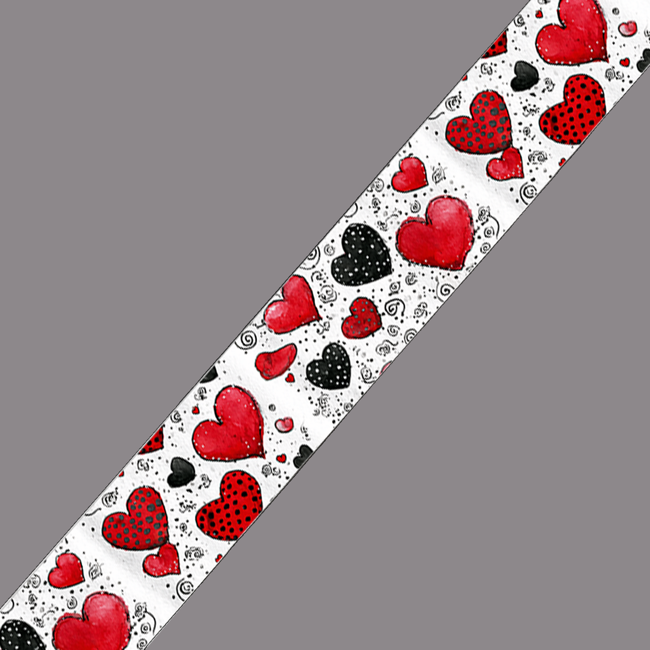 BioThane imprimé – Motif Cœurs rouges & noirs