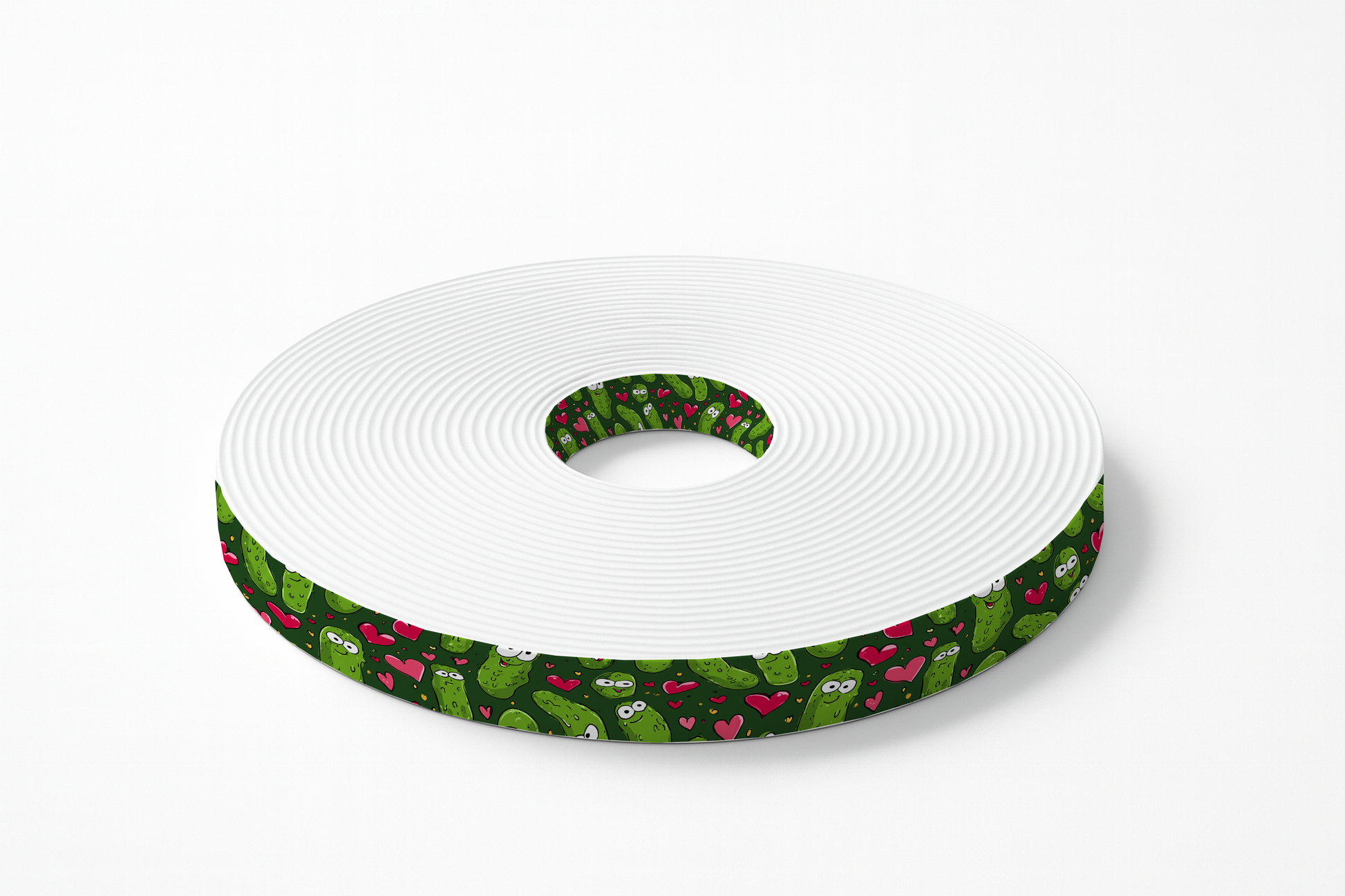 Fun, original et totalement décalé, ce BioThane imprimé met en scène de petits cornichons cartoon aux expressions malicieuses, entourés de cœurs roses sur un fond vert intense. Un motif plein d’humour et de tendresse, parfait pour celles et ceux qui aiment les créations qui sortent des sentiers battus.