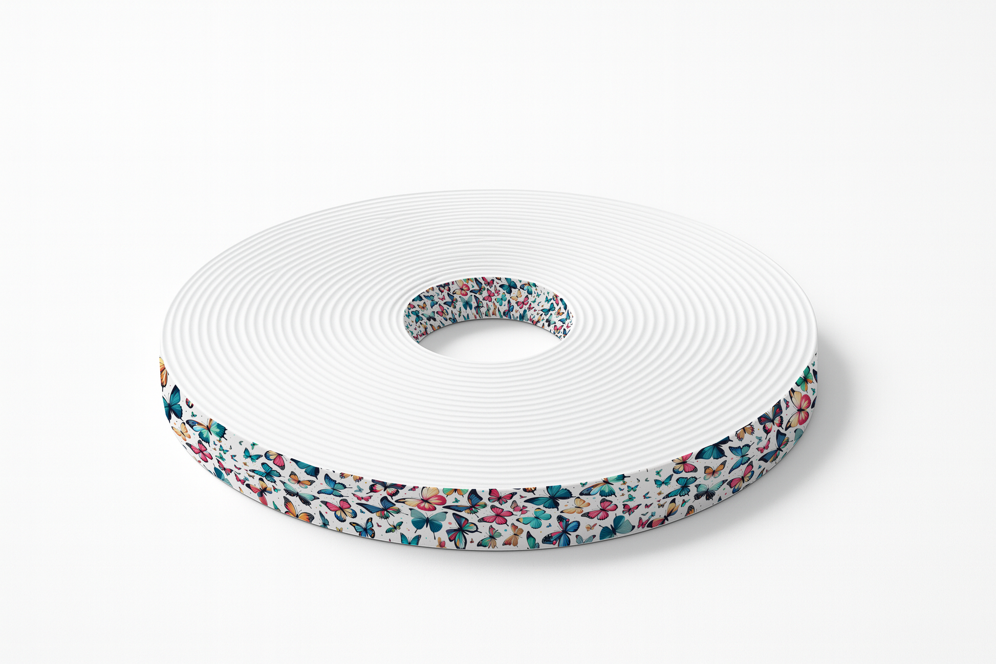 Ajoutez une touche de légèreté et de poésie à vos créations grâce à ce magnifique BioThane imprimé au motif "Papillons multicolores". Un envol de papillons aux ailes éclatantes se détache sur un fond clair délicatement texturé. Ce motif raffiné est idéal pour réaliser des colliers, laisses, ceintures ou tout autre accessoire original et durable.