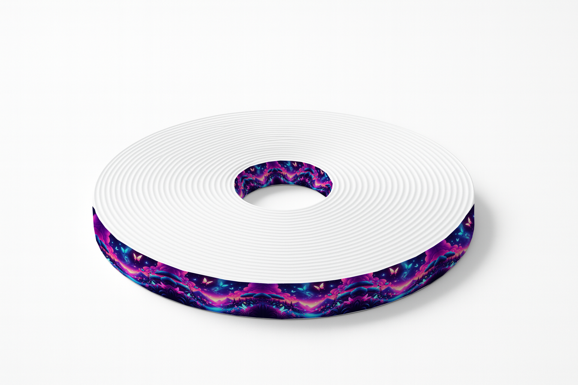 Un enchantement visuel pour vos créations ! Ce motif féérique dépeint une forêt lumineuse et mystérieuse, où une nuée de papillons étincelants traverse un ciel étoilé. Les couleurs profondes et contrastées (bleu nuit, violet, rose) en font un choix magique pour colliers ou laisses uniques.