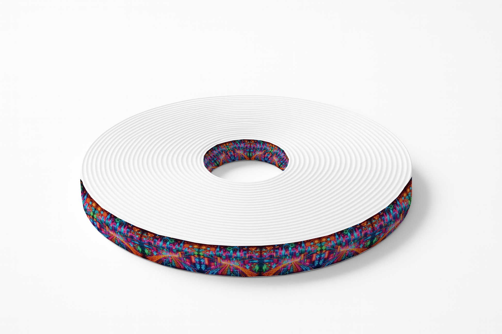 Plongez dans une ambiance urbaine électrique avec notre BioThane imprimé "Ville néon" ! Ce motif unique représente une skyline vibrante aux couleurs fluorescentes, entre rose fuchsia, bleu électrique, vert lime et orange incandescent.
