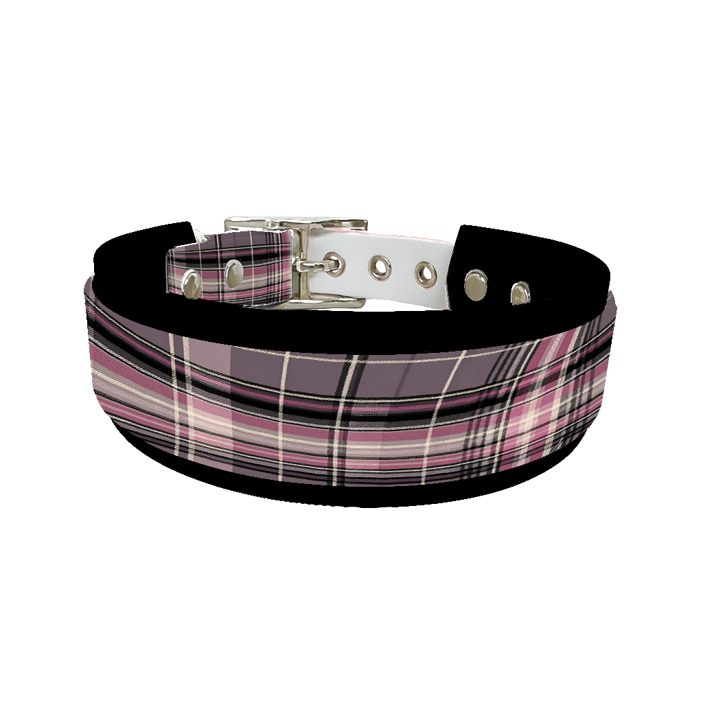 Un collier élégant et confortable, inspiré des motifs tartan au style intemporel. Cette version associe une sur-bande imprimée de 25 mm (impression UV haute tenue) fixée sur une base plus fine de 19 mm en BioThane®, idéale pour un port léger et raffiné au quotidien.