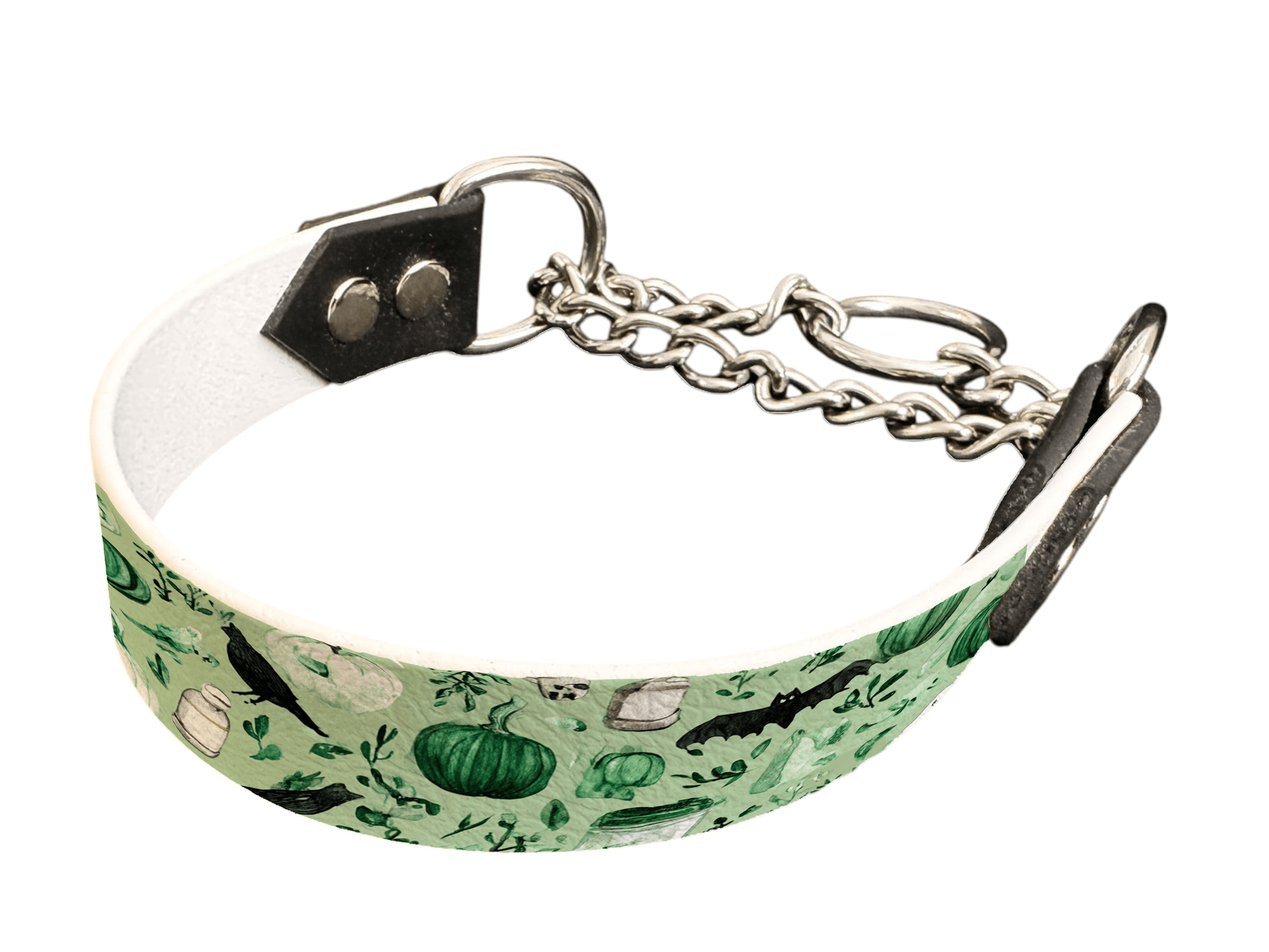 Faites entrer la magie d’Halloween dans les balades de votre compagnon ! Cette martingale 25 mm imprimée en UV haute qualité arbore des motifs terrifiants ou amusants : citrouilles souriantes, fantômes espiègles, chauves-souris ou encore manoirs hantés. Un collier unique qui allie style, confort et robustesse.