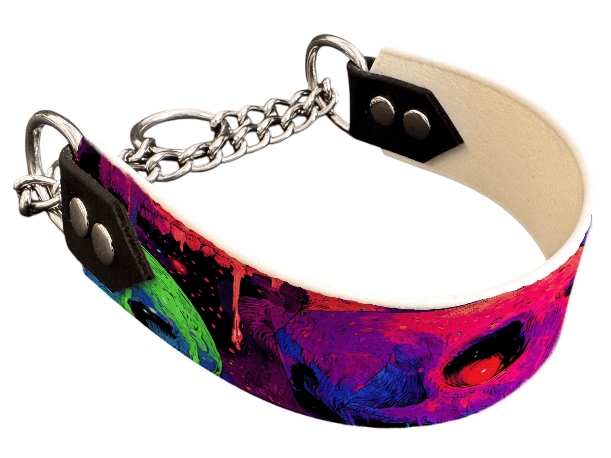 Offrez à votre compagnon un style unique et festif avec notre martingale pour chien spécialement conçue pour la saison d’Halloween. Large de 38 mm sur la partie imprimée en encre UV, elle assure confort et maintien tout en arborant des motifs originaux : citrouilles, fantômes, chauves-souris ou encore poupées vaudou, pour un look 100% Halloween.