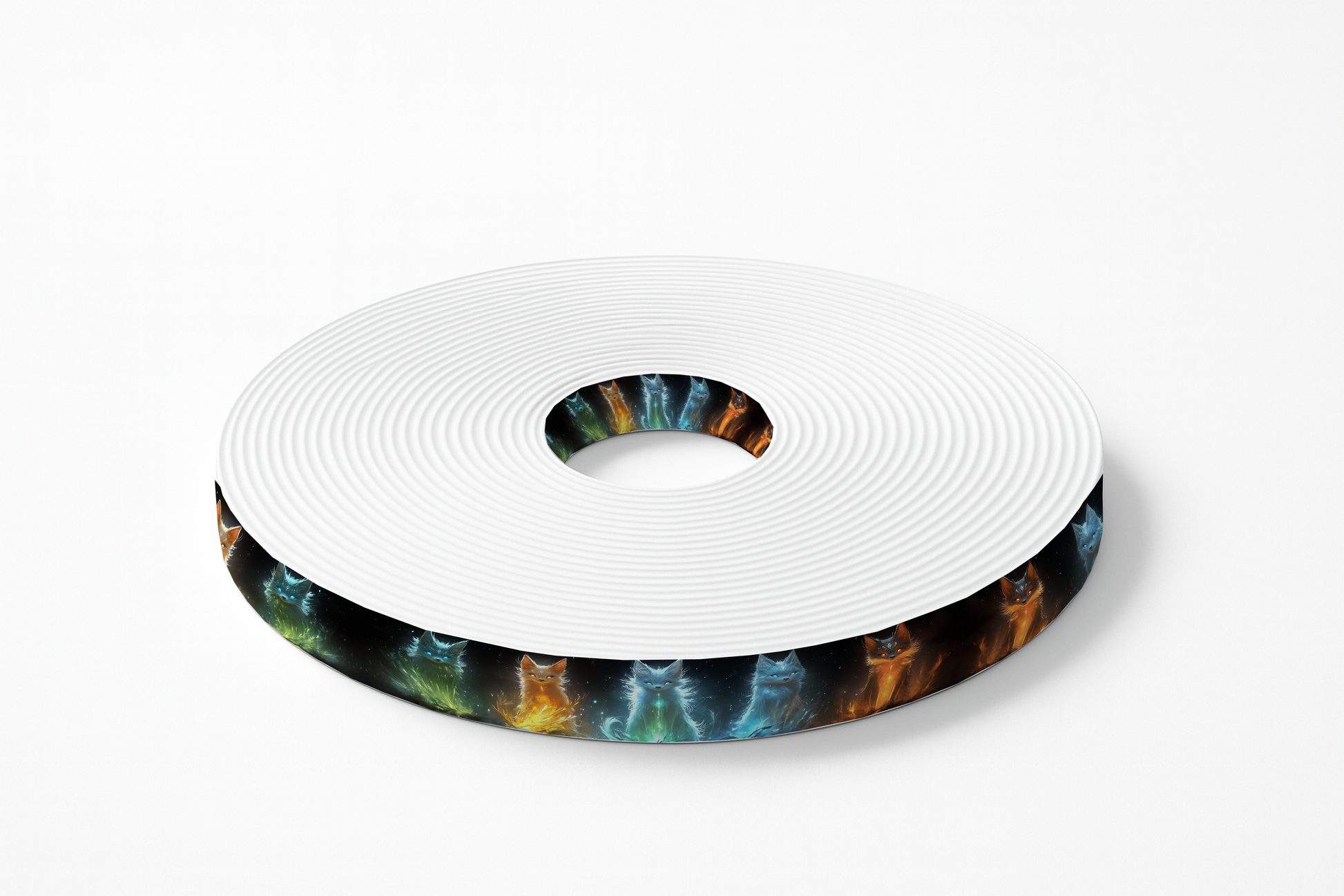 Plongez dans un univers mystique et sauvage avec ce motif de BioThane imprimé représentant une meute de loups galactiques aux couleurs flamboyantes. Ces loups majestueux émergent d’un fond noir étoilé, enveloppés de flammes colorées et d’auras lumineuses évoquant les éléments. Chaque animal, qu’il soit bleu glacé, vert émeraude ou orange incandescent, semble veiller sur la nuit cosmique…
