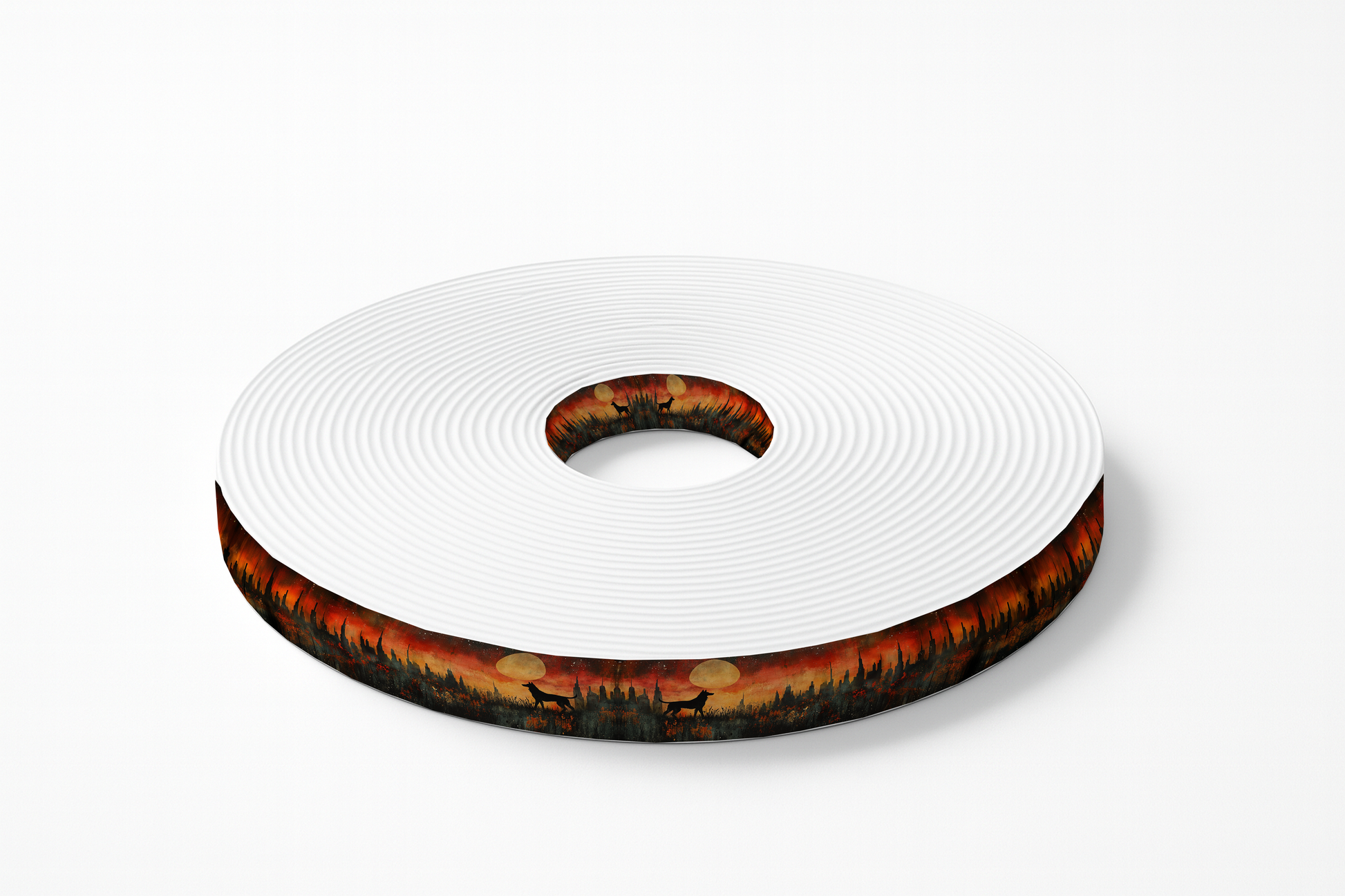 🎨 Motif BioThane imprimé – Loups hurlant à la lune dans une forêt rougeoyante
