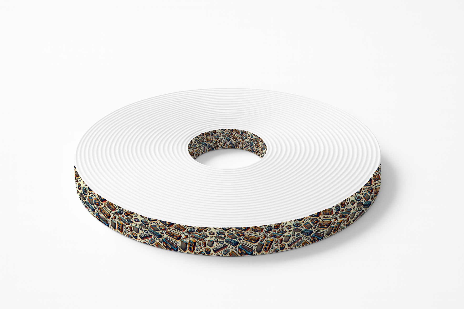 Un motif rétro-pop bourré de style avec ses radios vintage, enceintes et cassettes colorées façon BD. Pour les amoureux du son et du design décalé !
