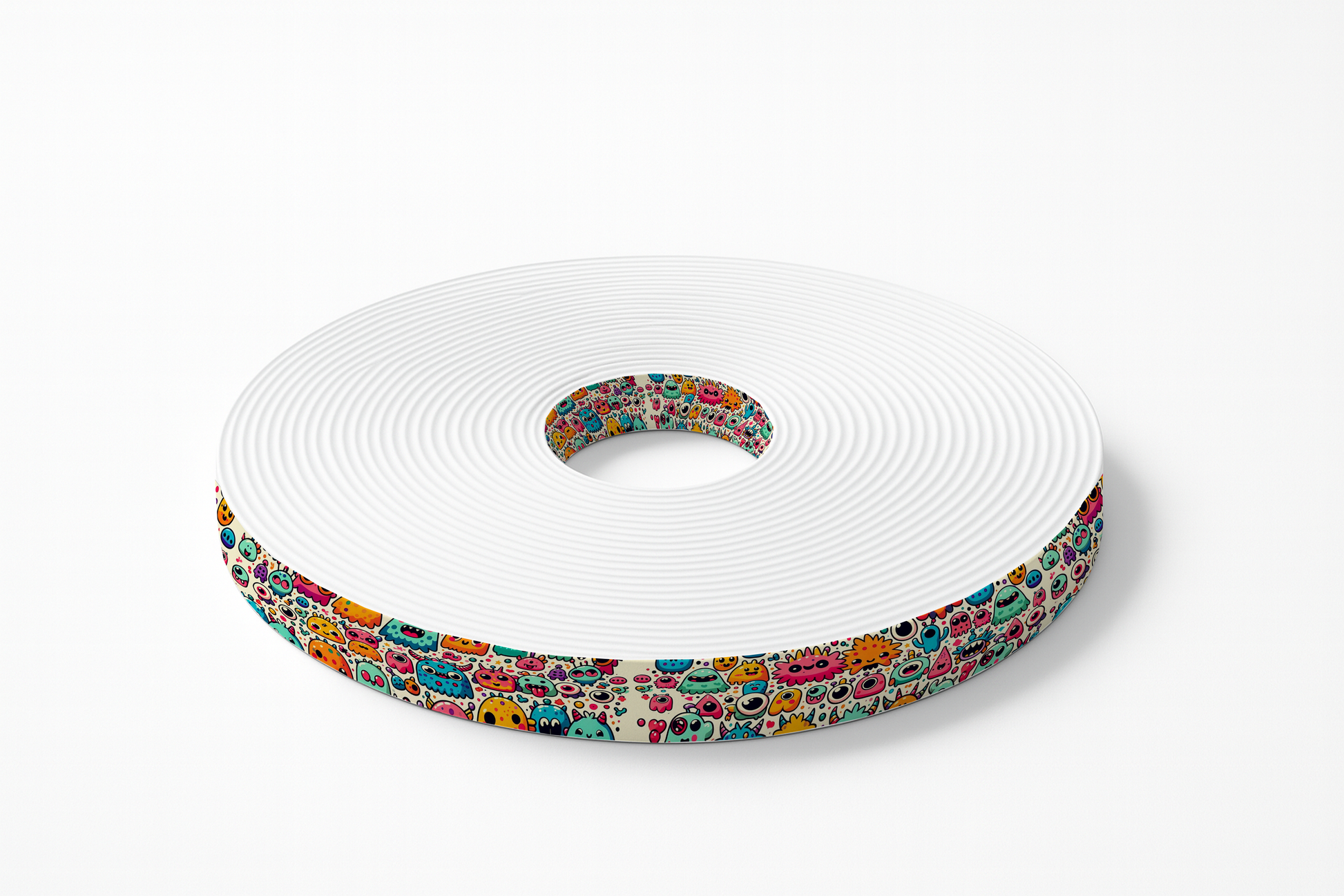 Ajoutez une touche de fun et de fantaisie à vos créations avec notre sangle en BioThane® imprimée « Monstrouillettes colorées » !